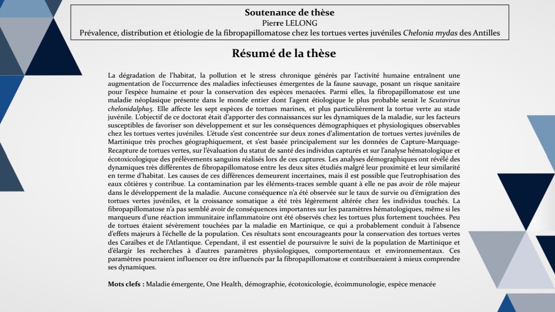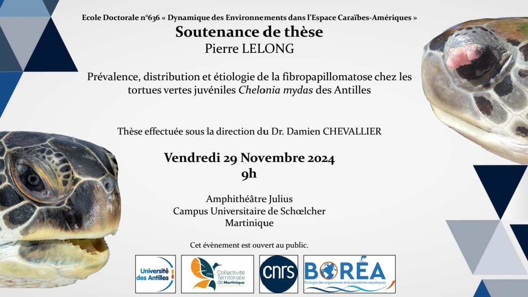Intitulé « Prévalence, distribution et étiologie de la fibropapillomatose chez les tortues vertes juvéniles Chelonia mydas des Antilles »